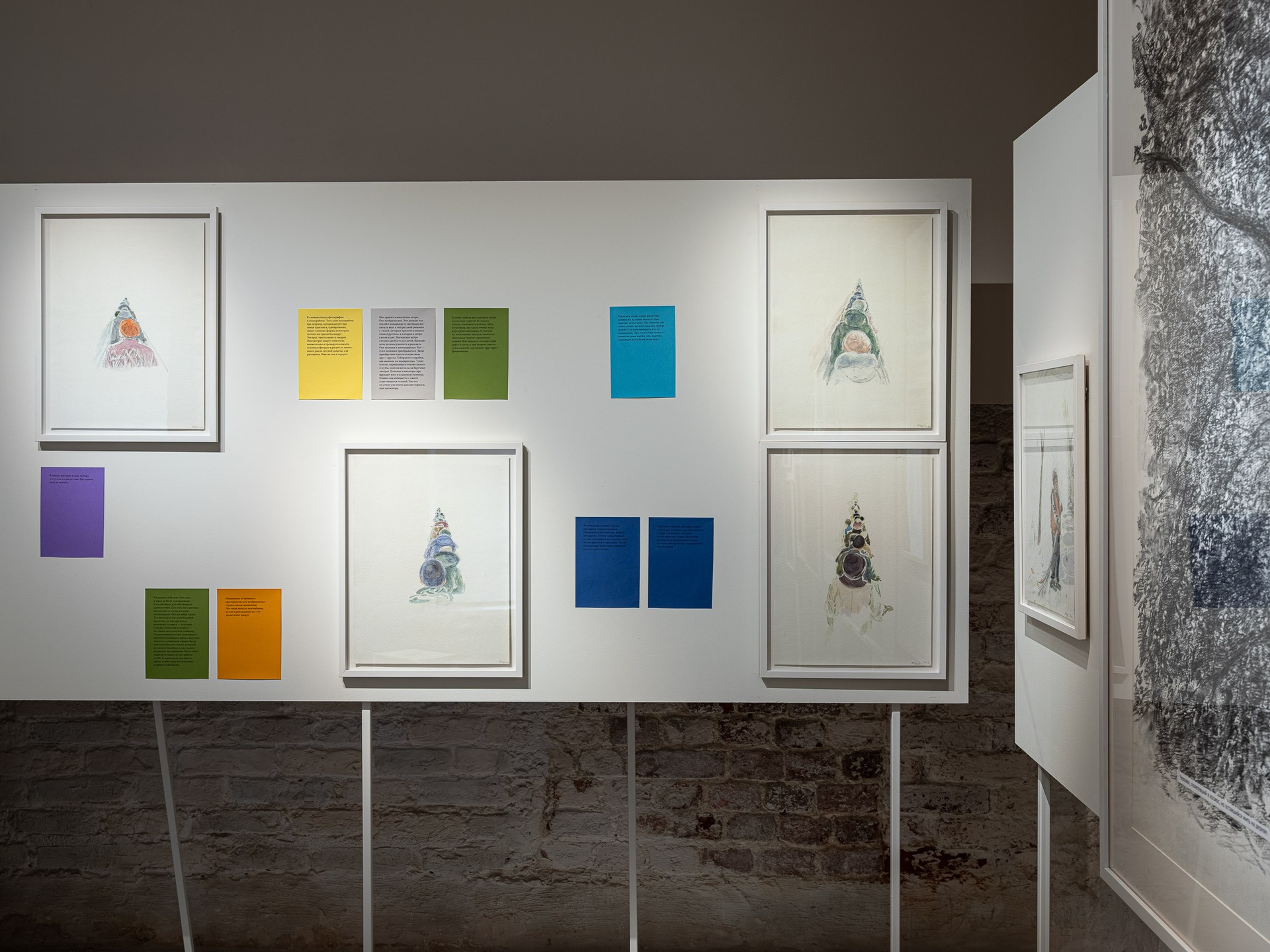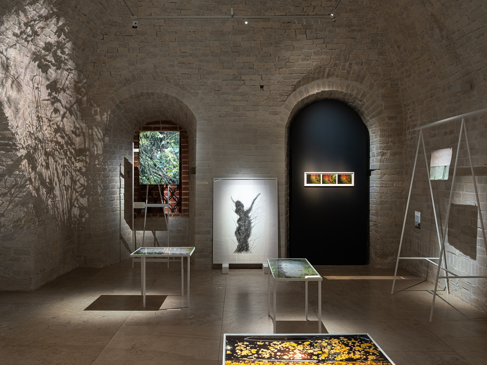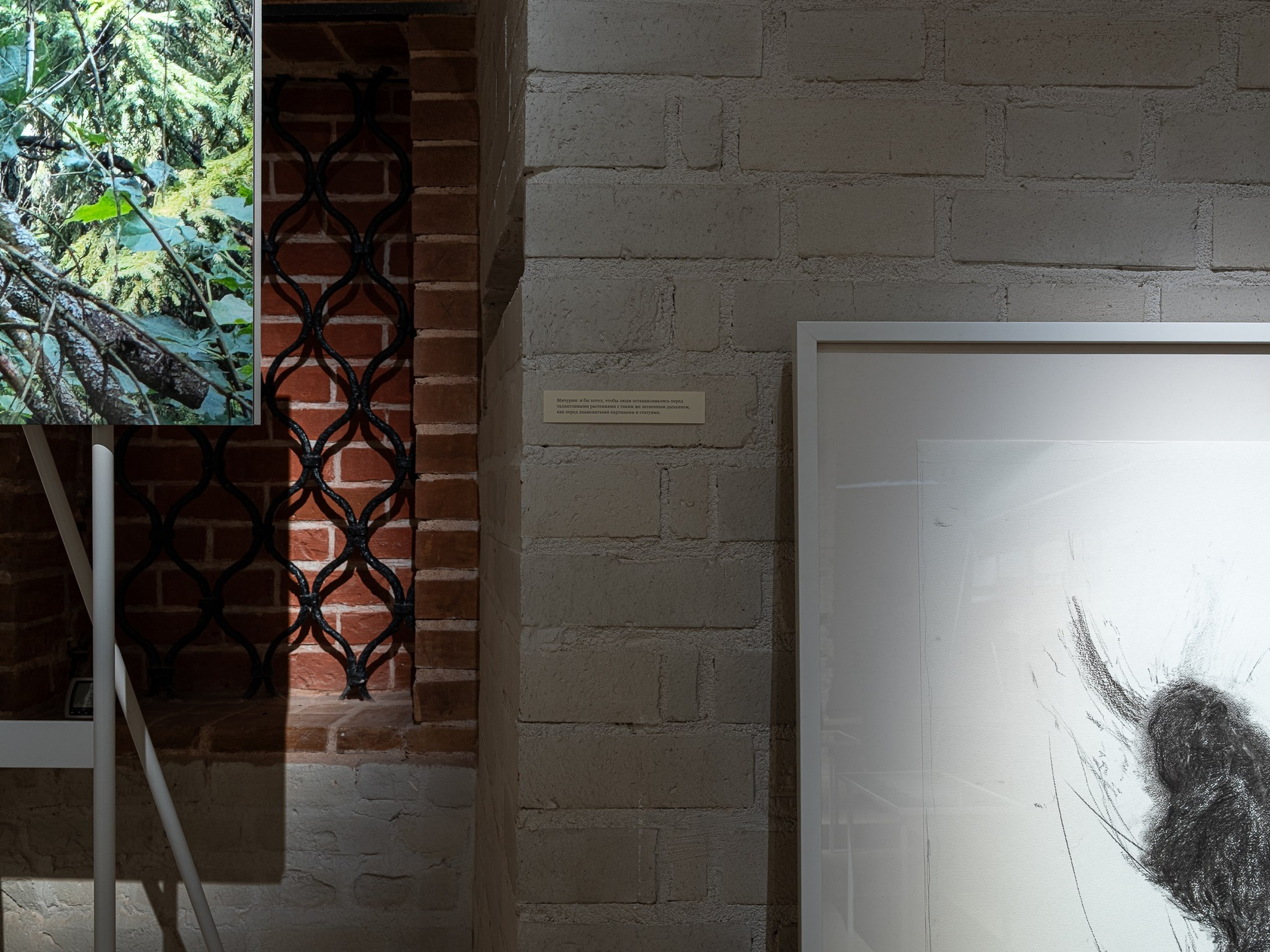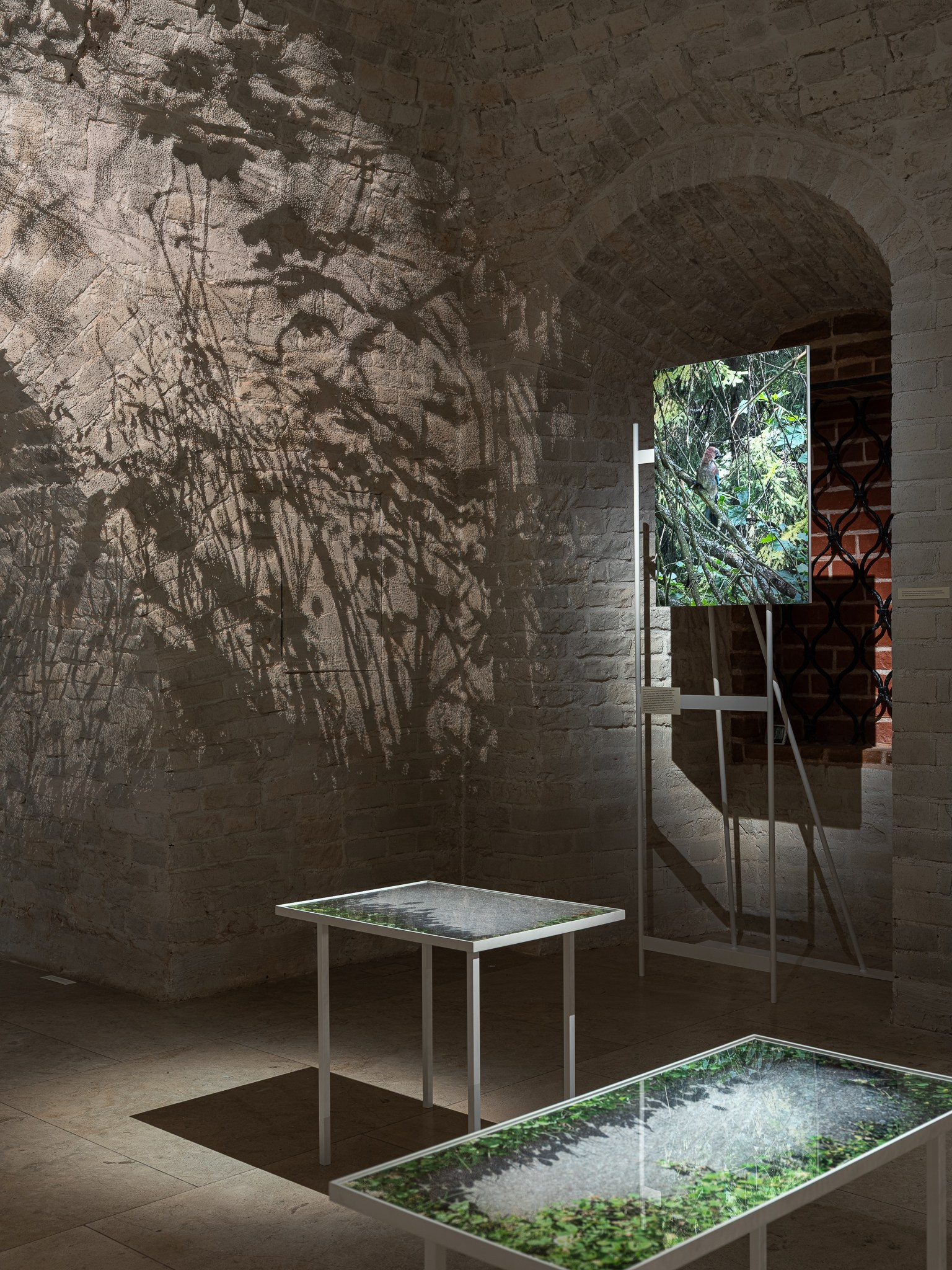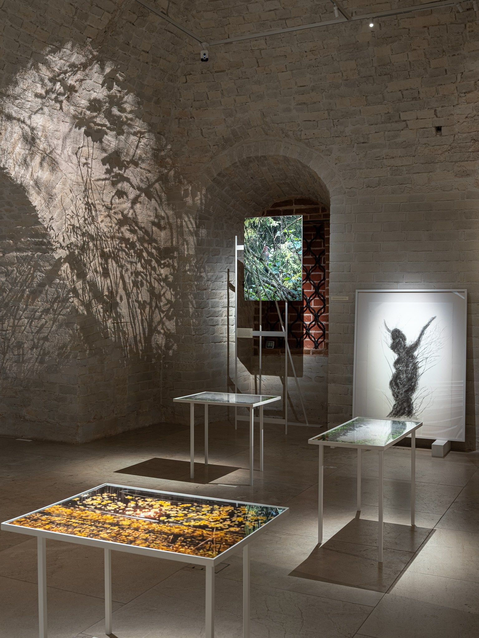 Два других зала выставки, посвященные образу листа как растительного элемента, предполагают особый, «неантропоцентричный», ракурс, где люди уступают место природе. В залах будут представлены разные состояния природы в акварелях из серии «Стирки» (2024)и «Пособие для роботов по изучению людей» (2019), живописных работах «Звук в лесу» (2024) и «Москва-река» (2025), видео-инсталляции «Blue ovals» (2018), а также в графических работах разных лет и фотографиях.