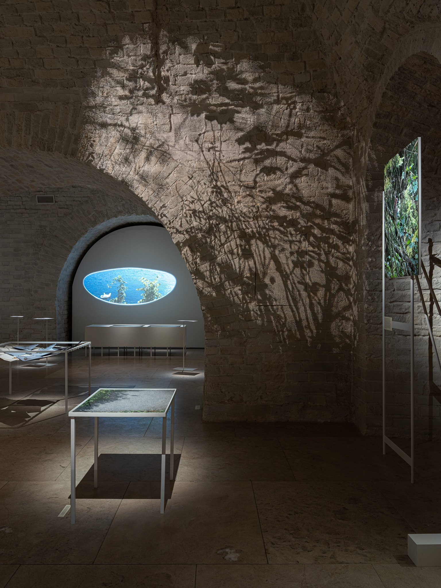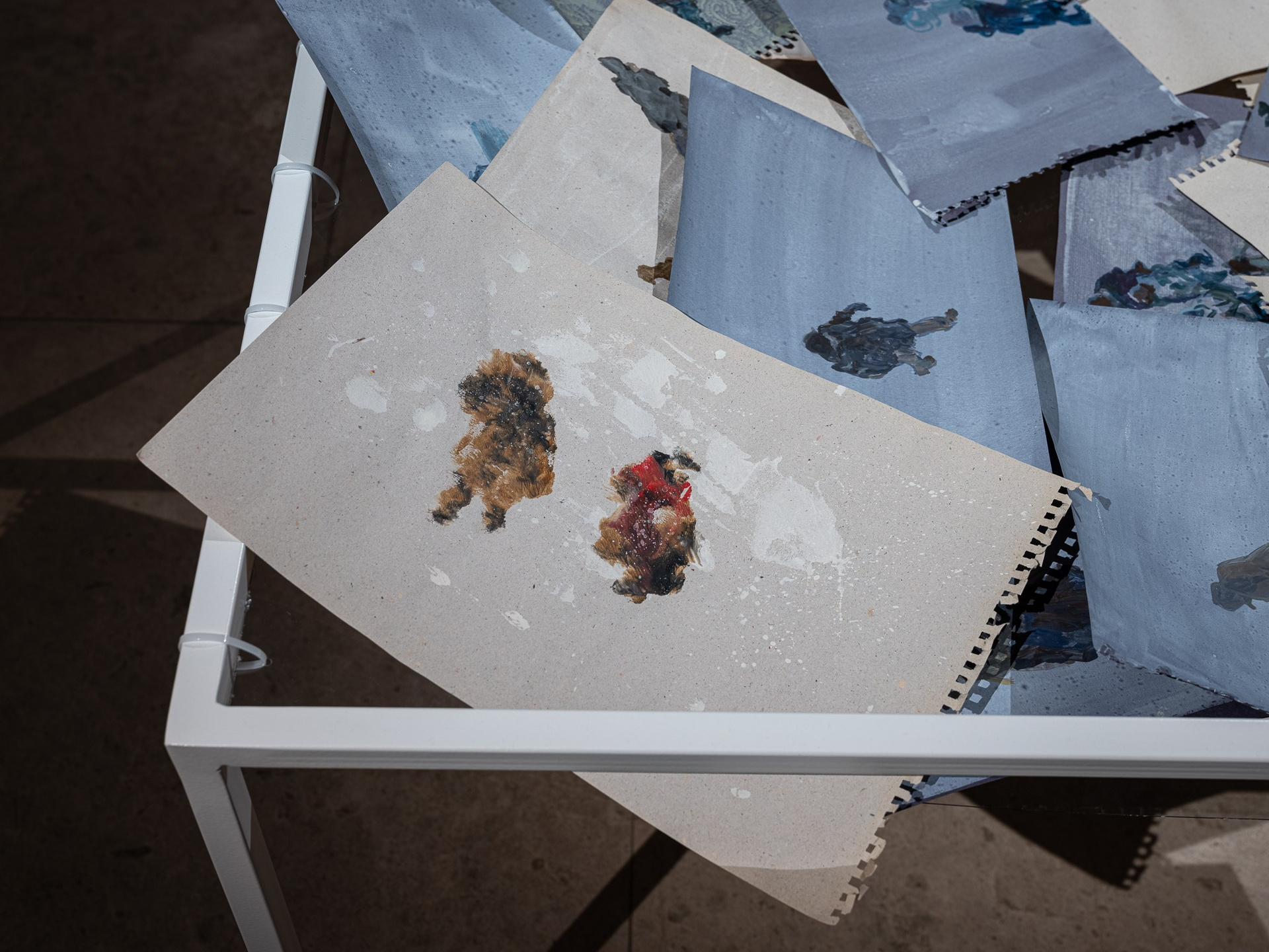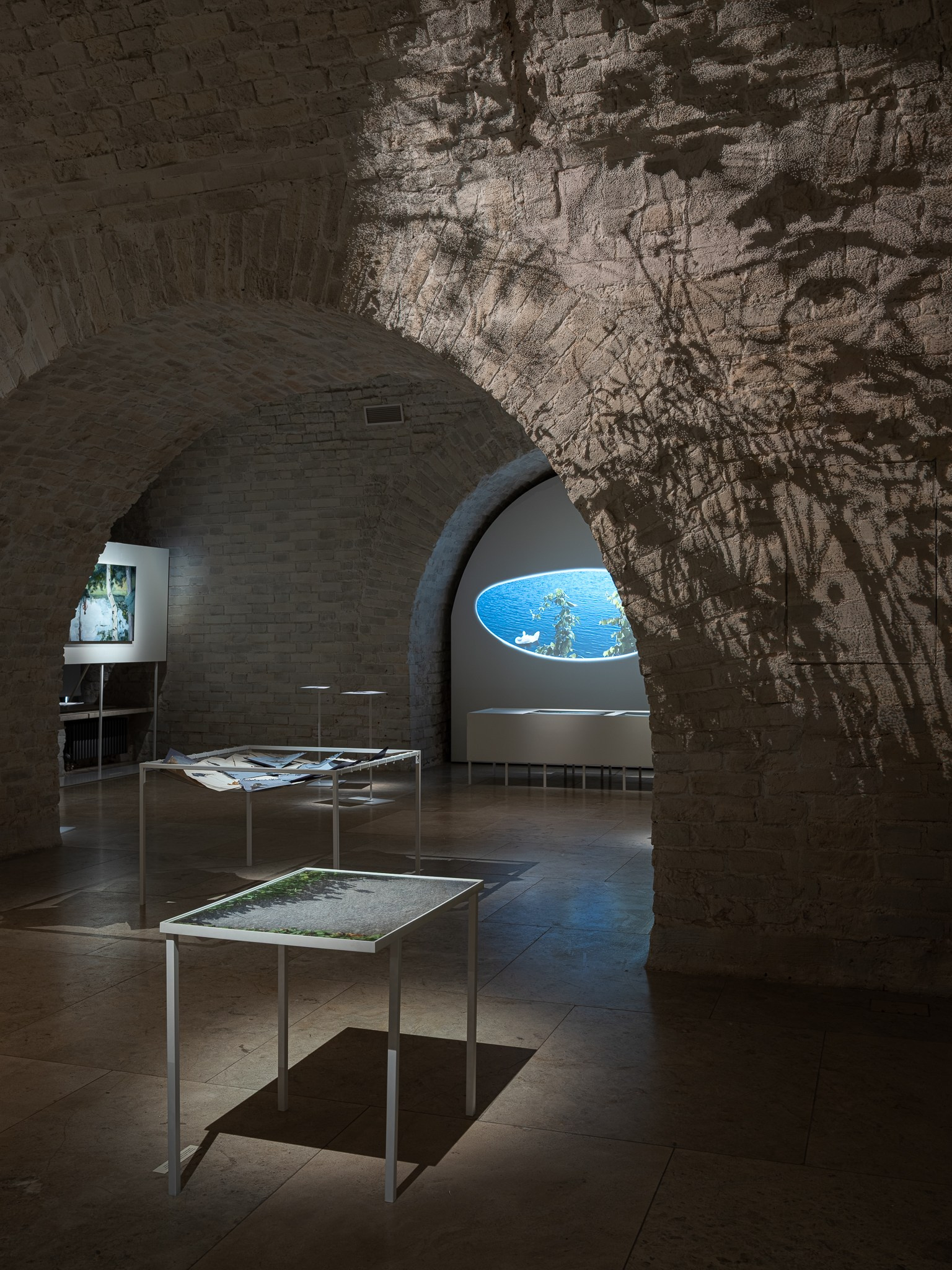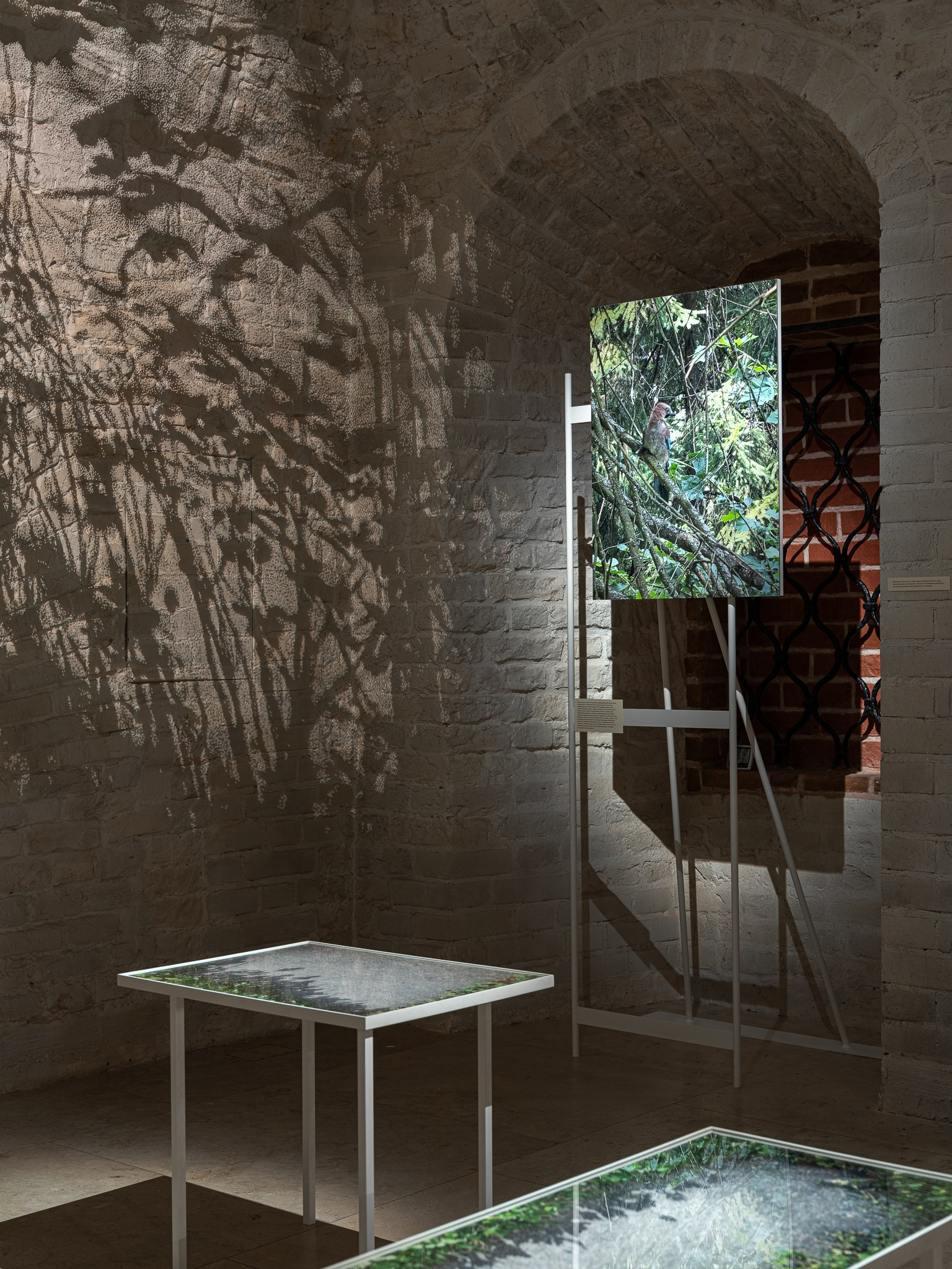 Два других зала выставки, посвященные образу листа как растительного элемента, предполагают особый, «неантропоцентричный», ракурс, где люди уступают место природе. В залах будут представлены разные состояния природы в акварелях из серии «Стирки» (2024)и «Пособие для роботов по изучению людей» (2019), живописных работах «Звук в лесу» (2024) и «Москва-река» (2025), видео-инсталляции «Blue ovals» (2018), а также в графических работах разных лет и фотографиях.