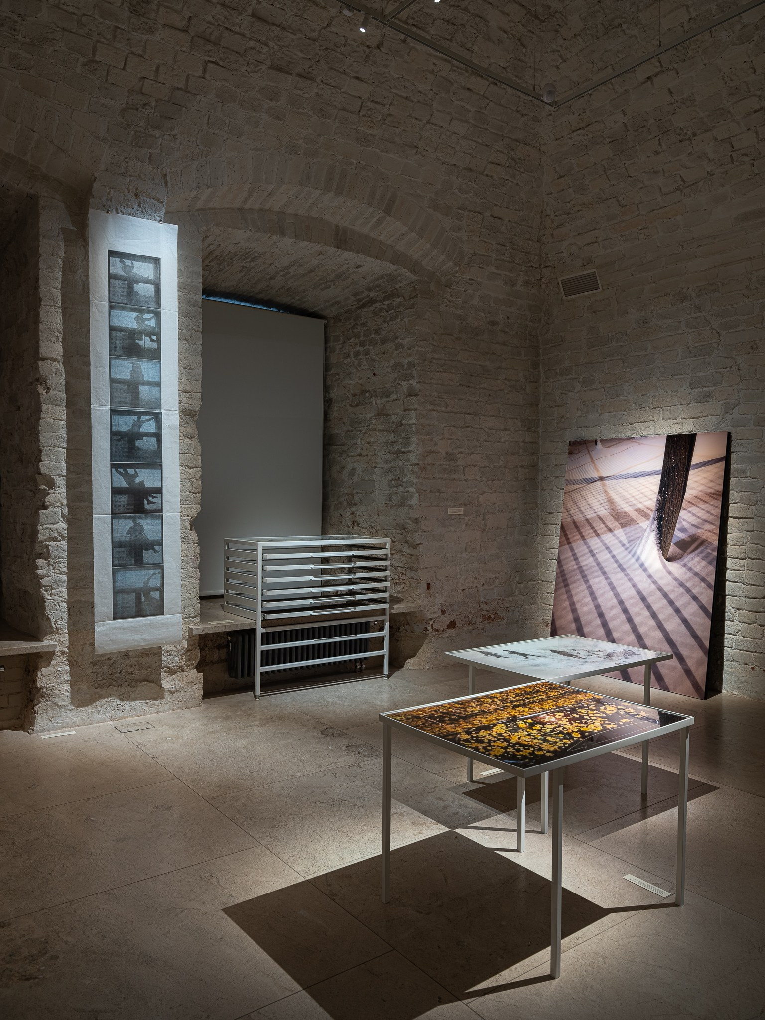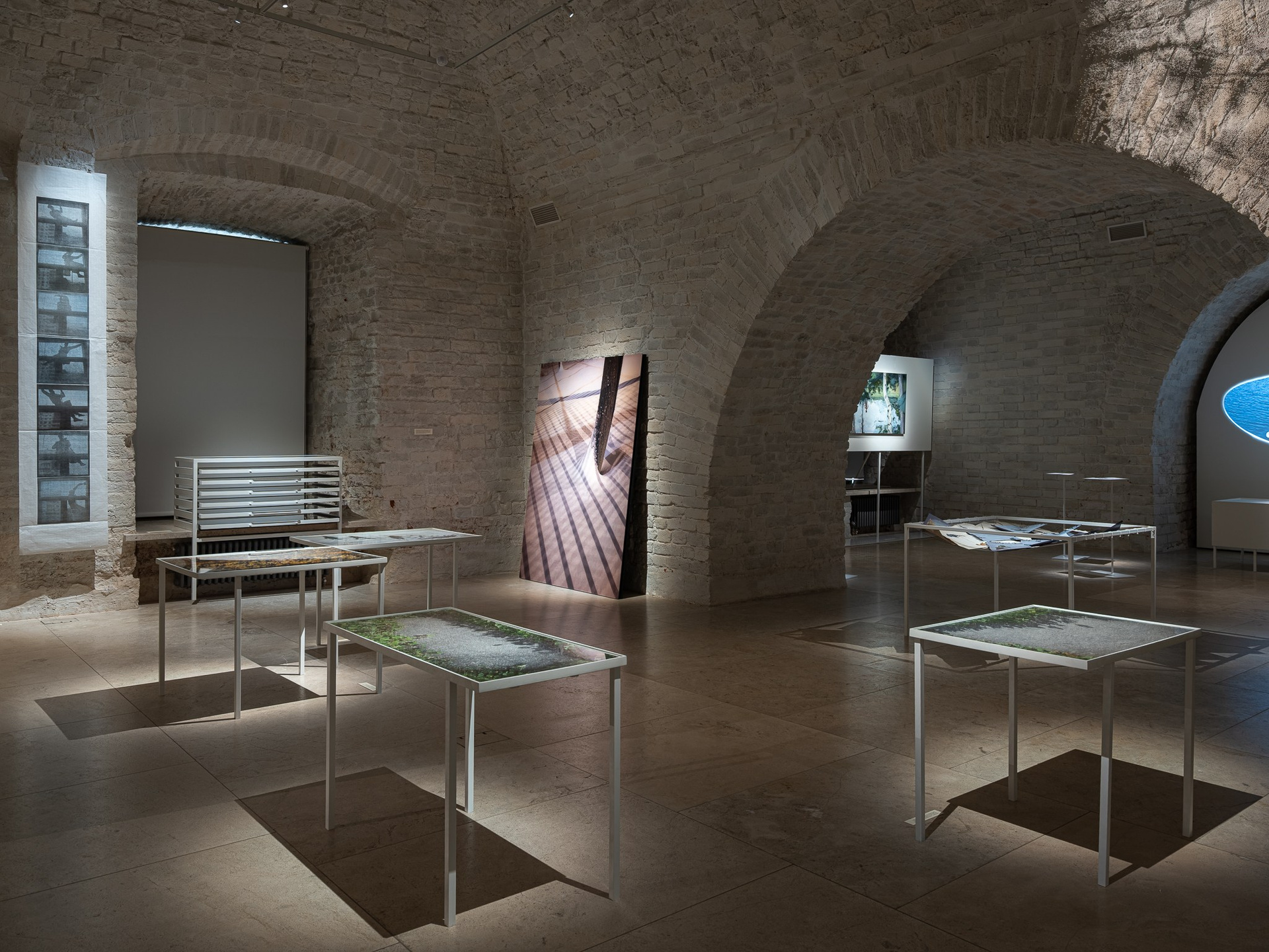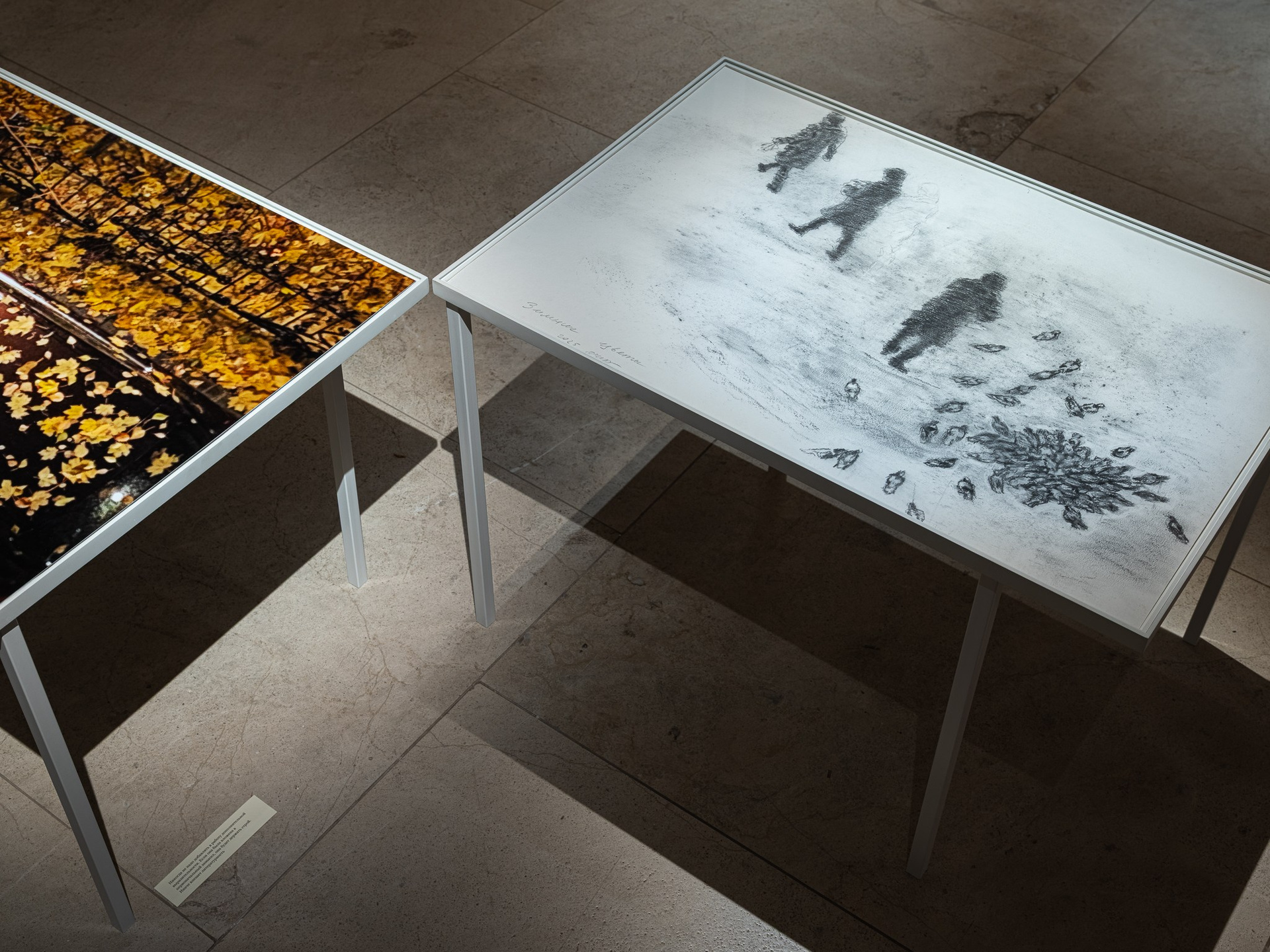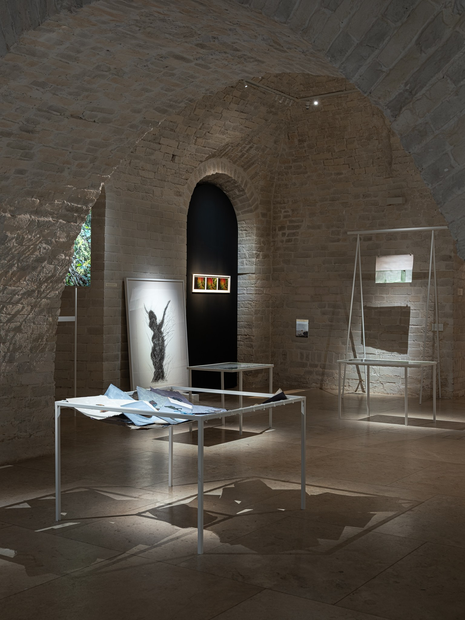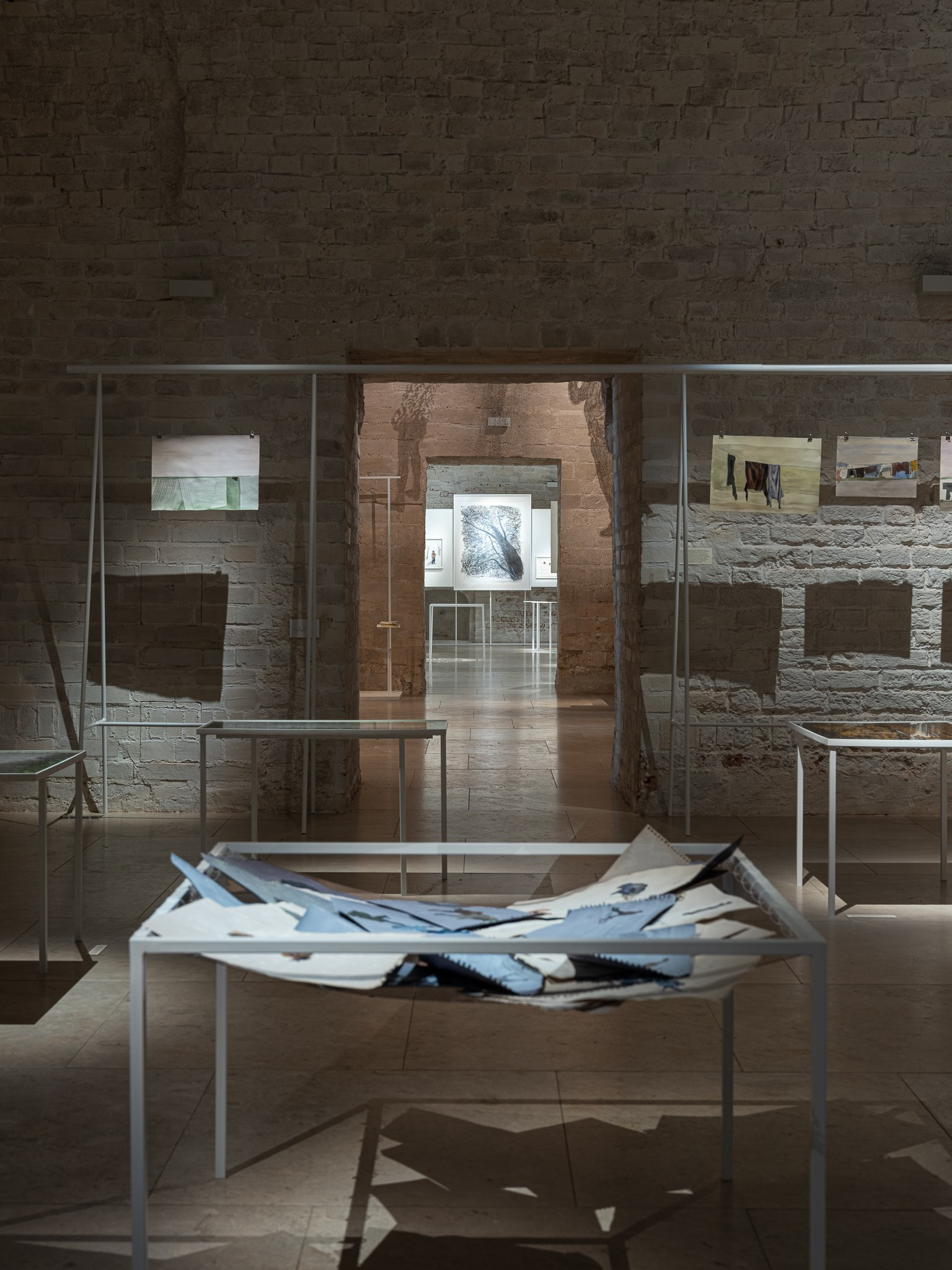 Два других зала выставки, посвященные образу листа как растительного элемента, предполагают особый, «неантропоцентричный», ракурс, где люди уступают место природе. В залах будут представлены разные состояния природы в акварелях из серии «Стирки» (2024)и «Пособие для роботов по изучению людей» (2019), живописных работах «Звук в лесу» (2024) и «Москва-река» (2025), видео-инсталляции «Blue ovals» (2018), а также в графических работах разных лет и фотографиях.