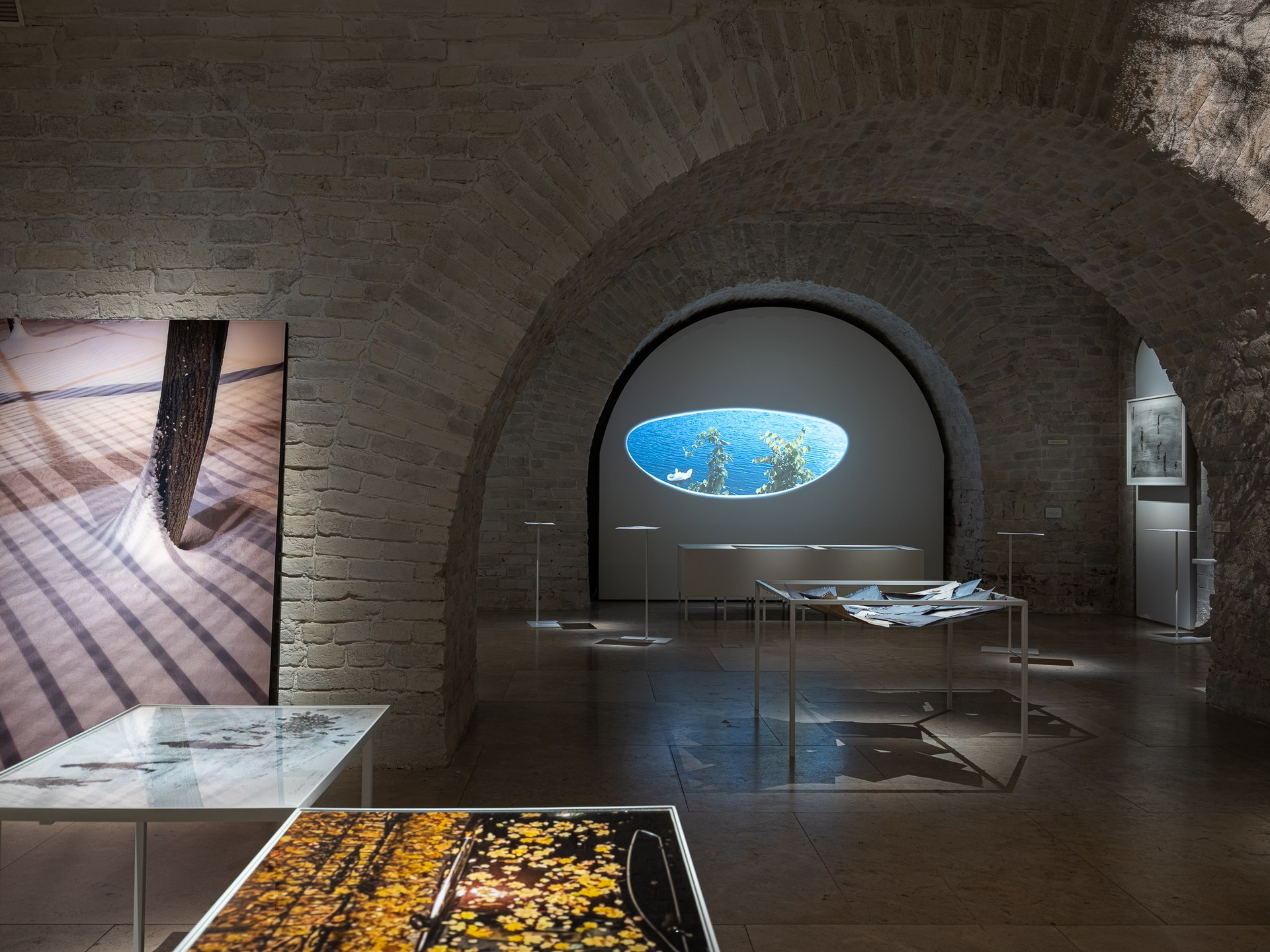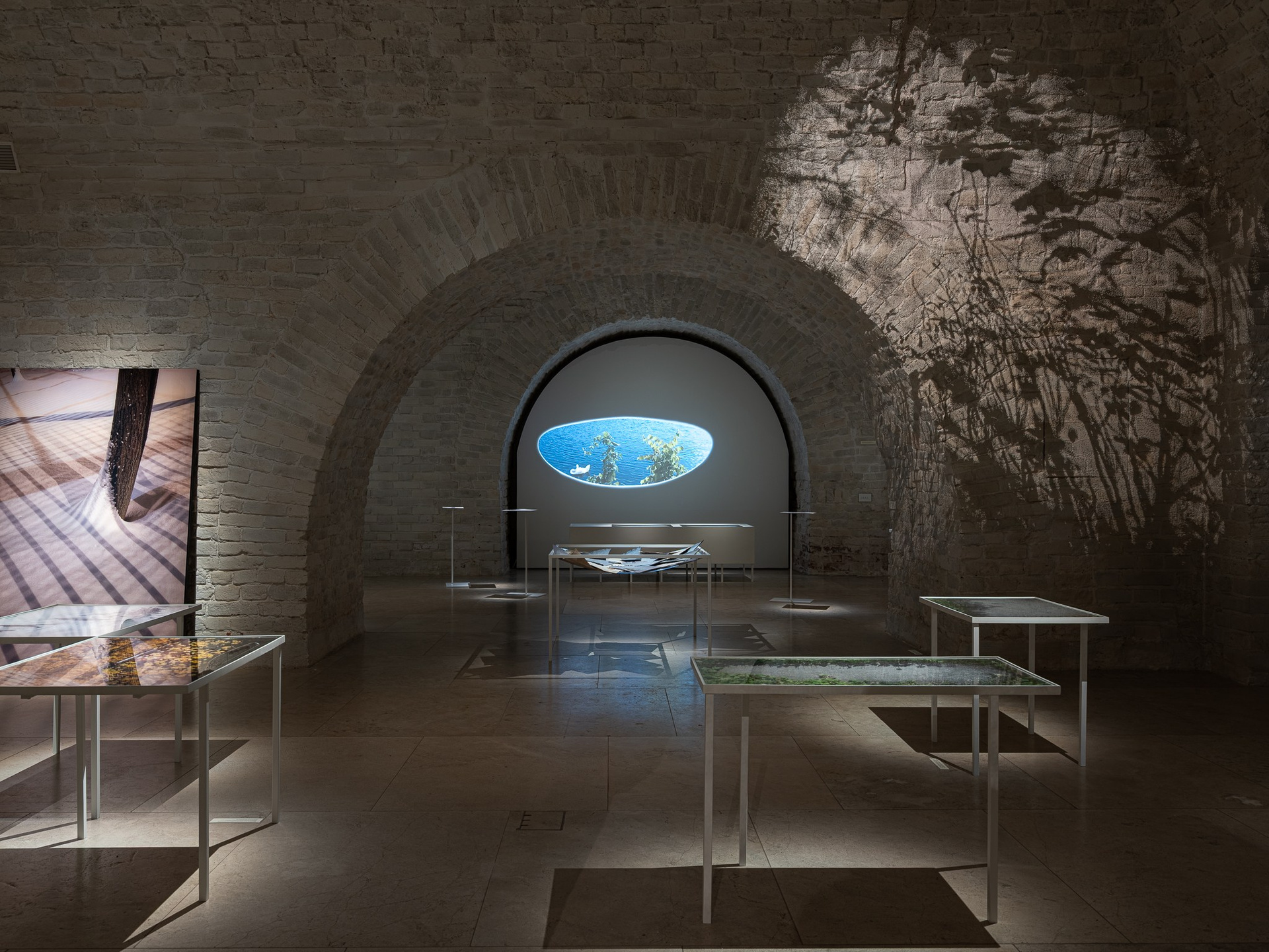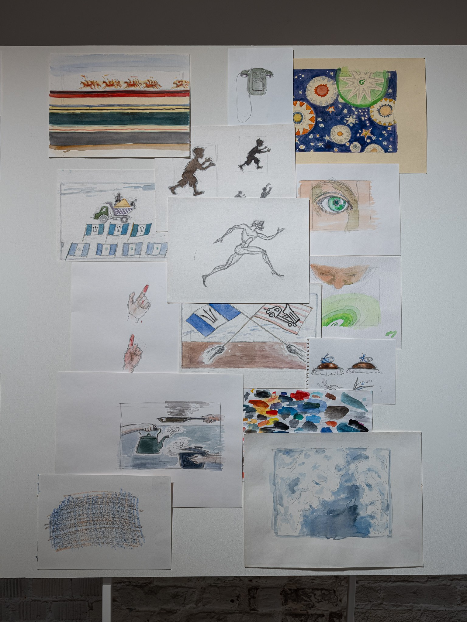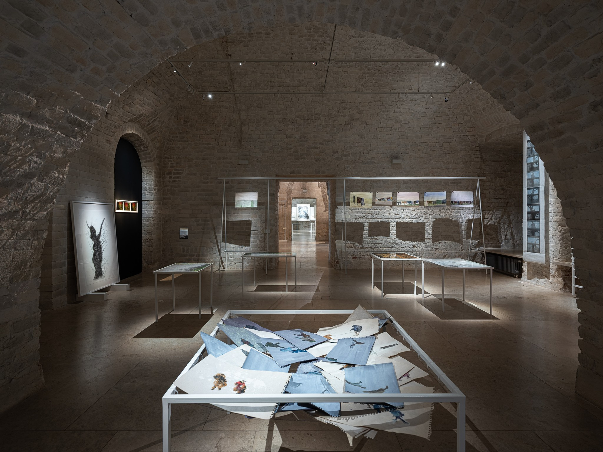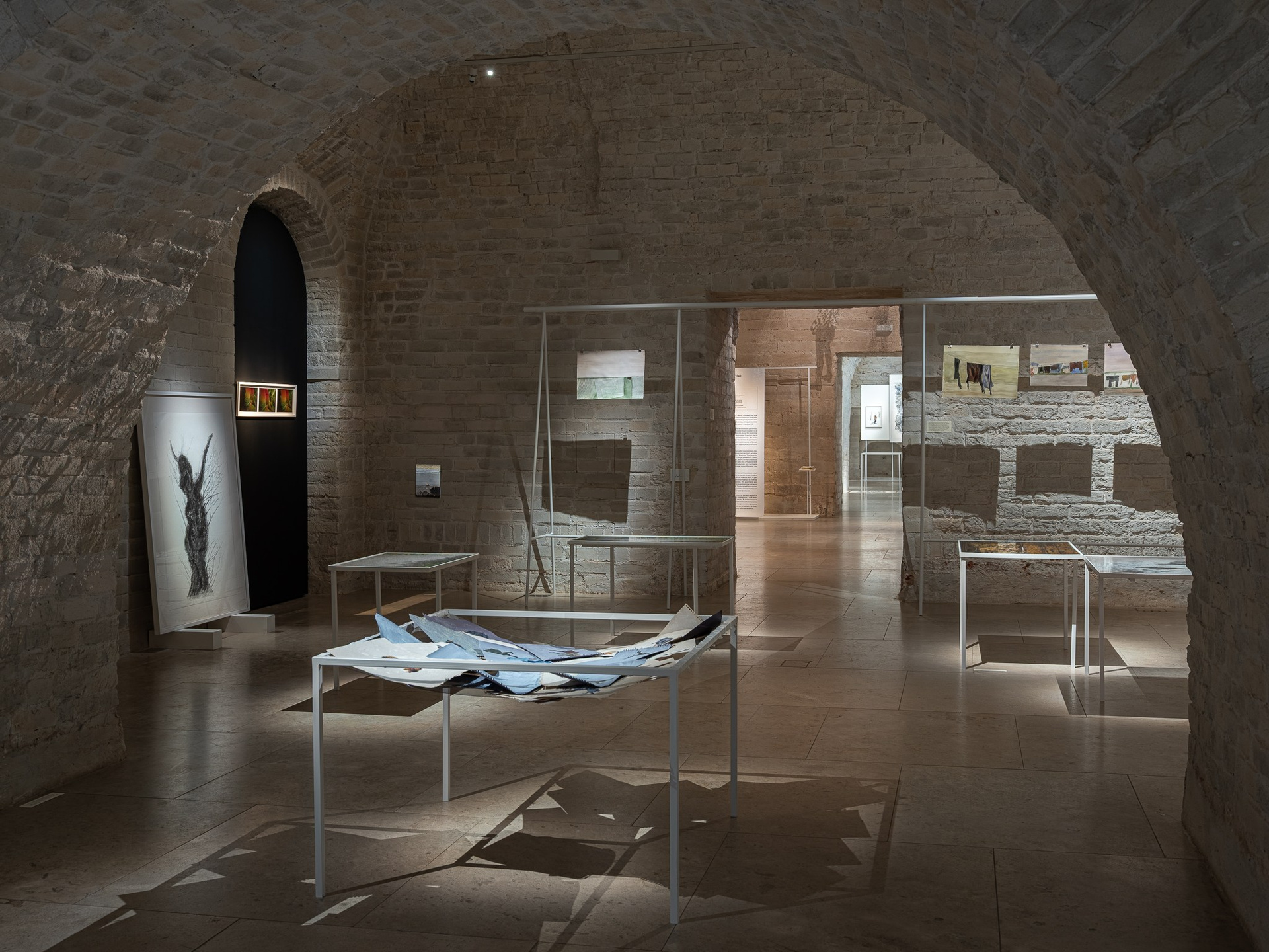 Два других зала выставки, посвященные образу листа как растительного элемента, предполагают особый, «неантропоцентричный», ракурс, где люди уступают место природе. В залах будут представлены разные состояния природы в акварелях из серии «Стирки» (2024)и «Пособие для роботов по изучению людей» (2019), живописных работах «Звук в лесу» (2024) и «Москва-река» (2025), видео-инсталляции «Blue ovals» (2018), а также в графических работах разных лет и фотографиях.