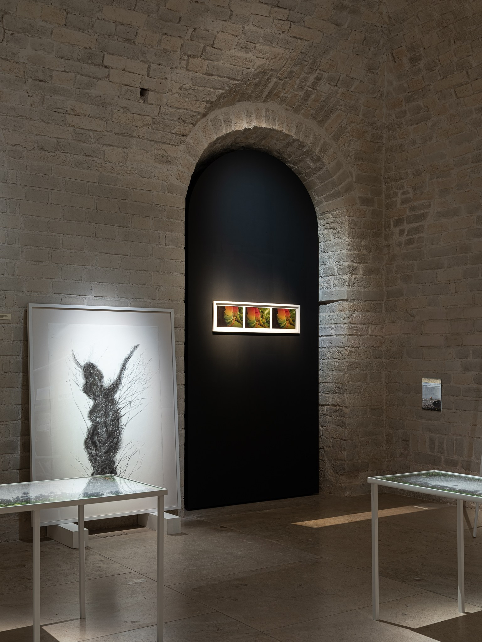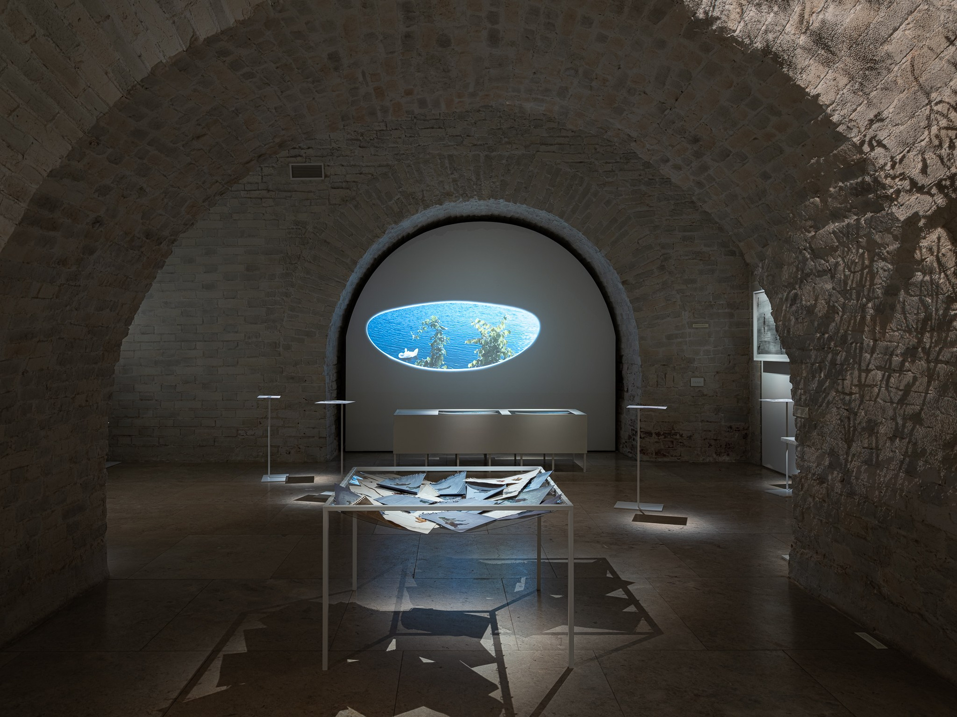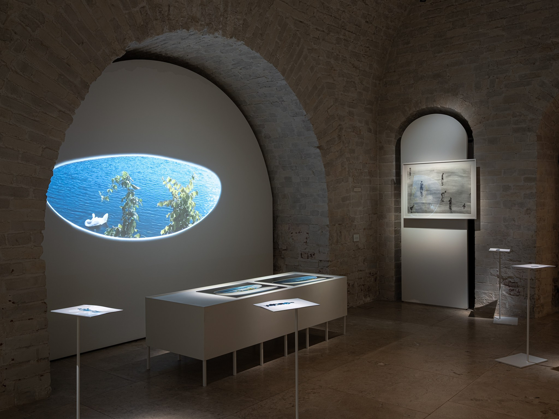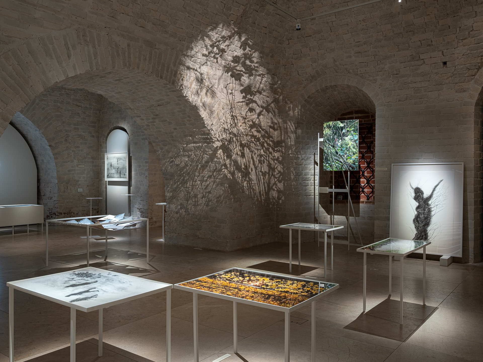Два других зала выставки, посвященные образу листа как растительного элемента, предполагают особый, «неантропоцентричный», ракурс, где люди уступают место природе. В залах будут представлены разные состояния природы в акварелях из серии «Стирки» (2024)и «Пособие для роботов по изучению людей» (2019), живописных работах «Звук в лесу» (2024) и «Москва-река» (2025), видео-инсталляции «Blue ovals» (2018), а также в графических работах разных лет и фотографиях.