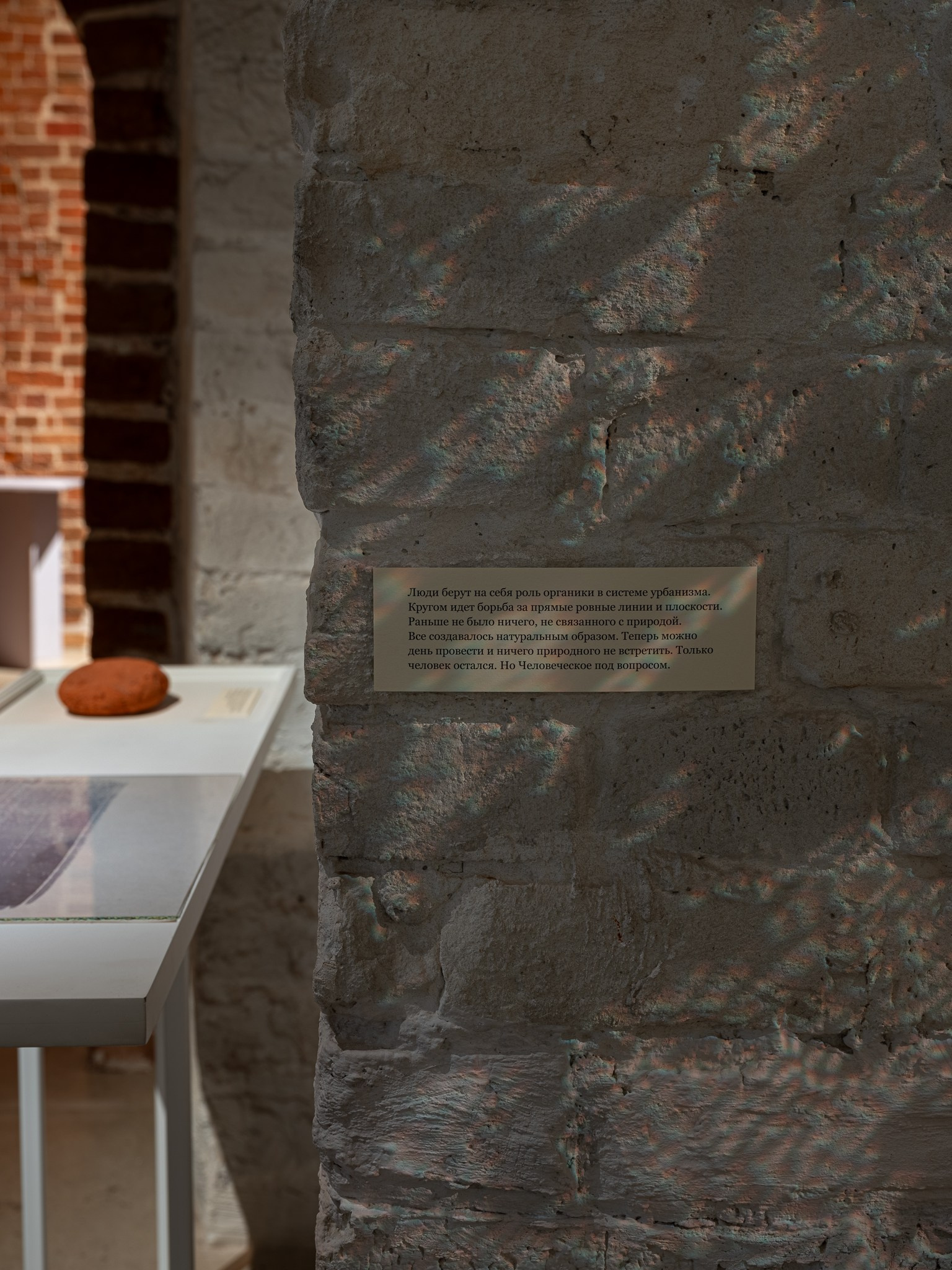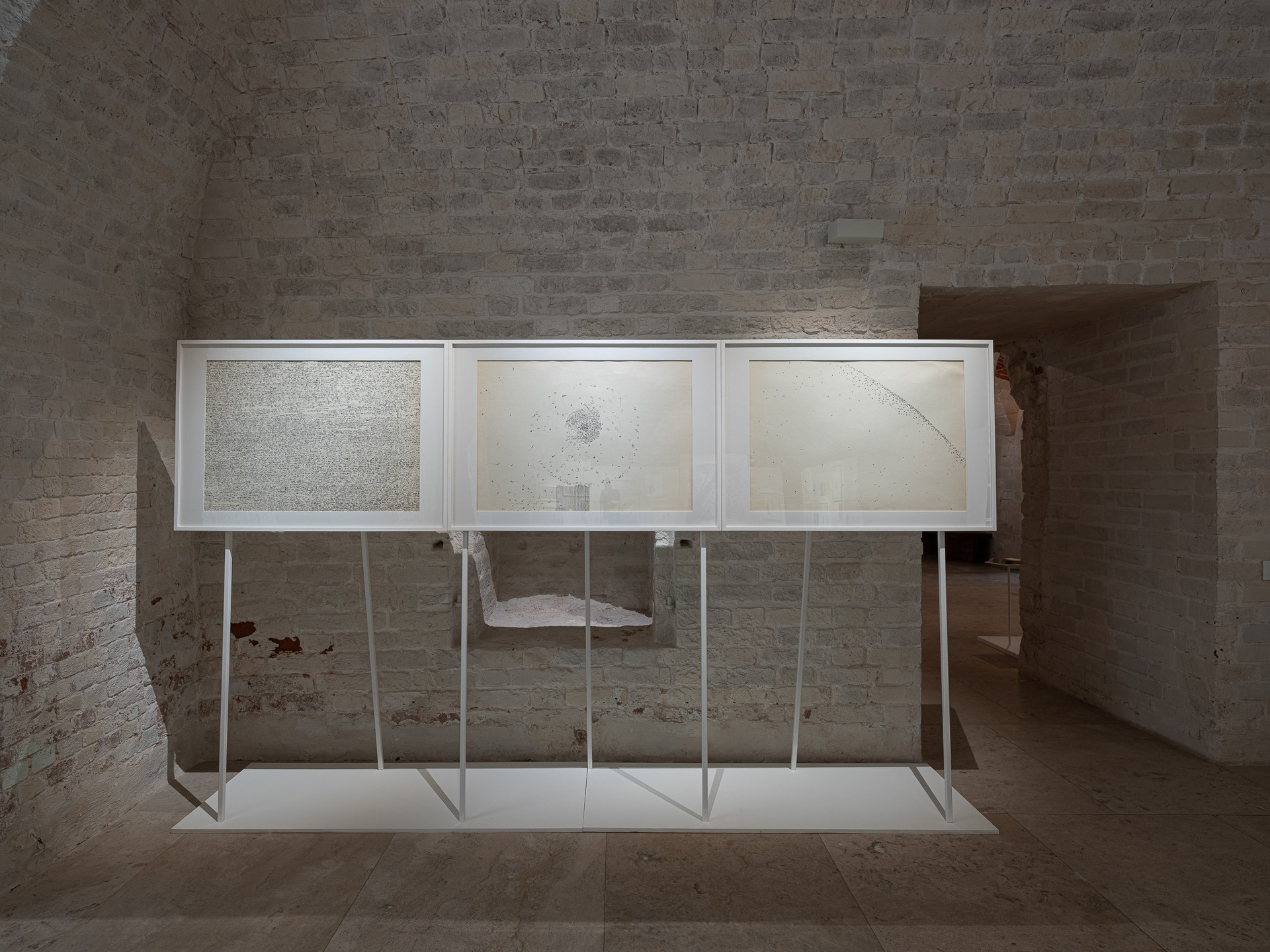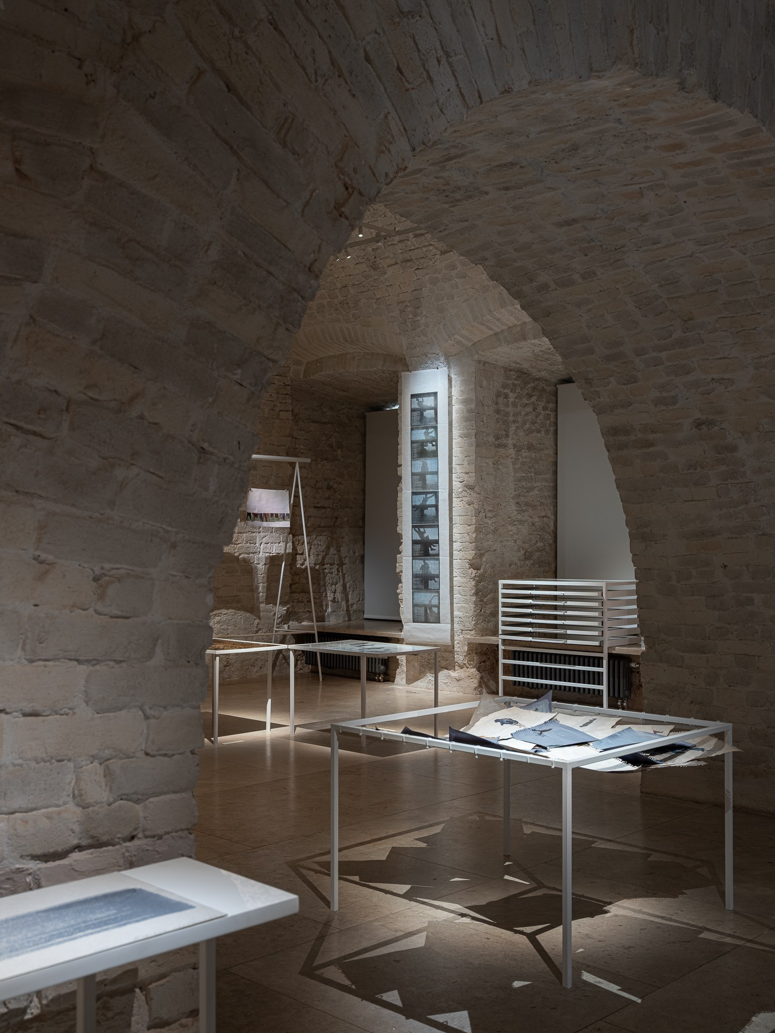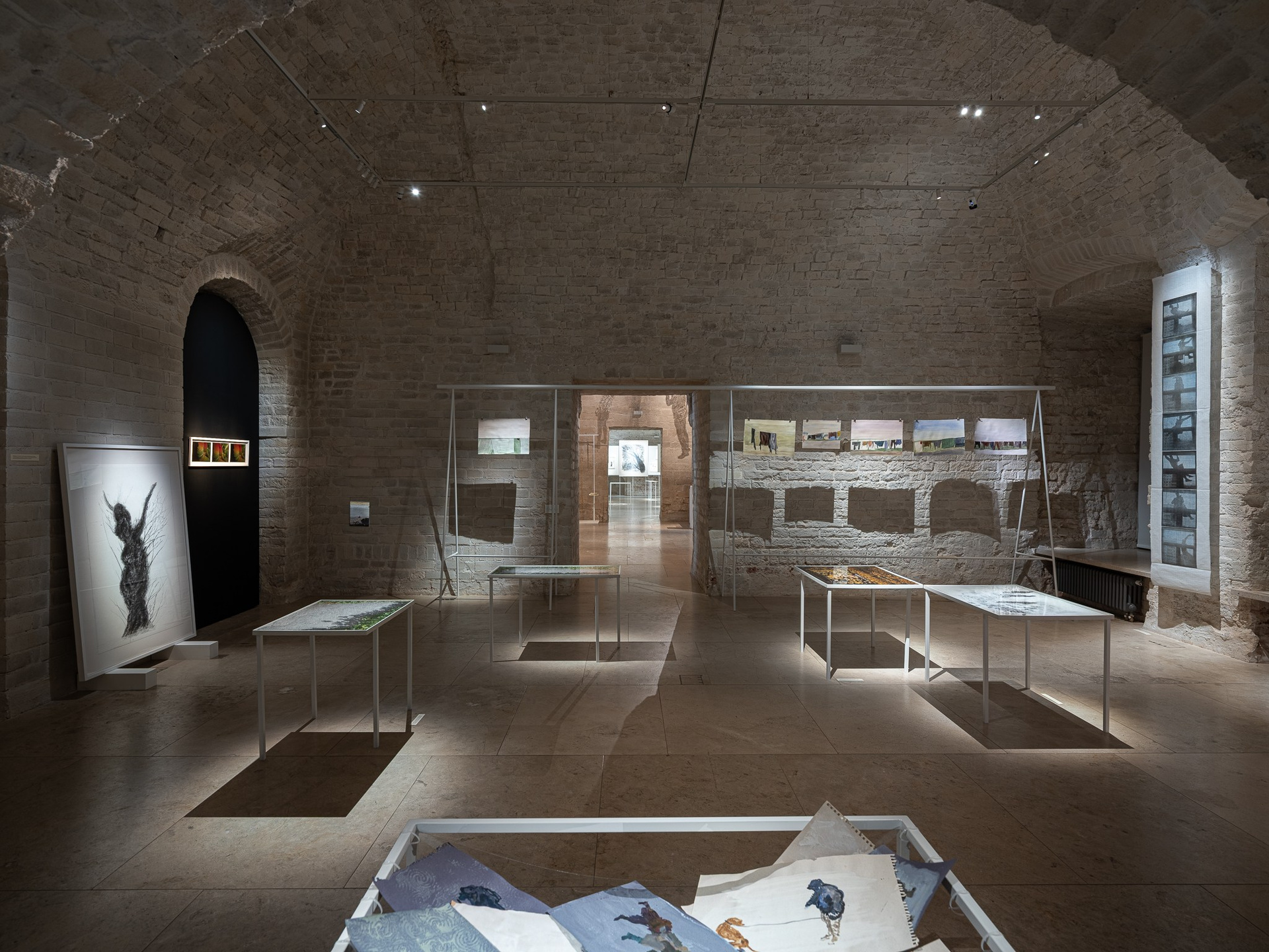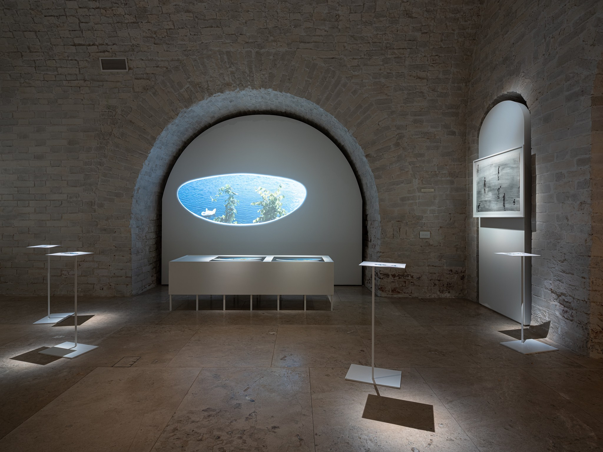 Два других зала выставки, посвященные образу листа как растительного элемента, предполагают особый, «неантропоцентричный», ракурс, где люди уступают место природе. В залах будут представлены разные состояния природы в акварелях из серии «Стирки» (2024)и «Пособие для роботов по изучению людей» (2019), живописных работах «Звук в лесу» (2024) и «Москва-река» (2025), видео-инсталляции «Blue ovals» (2018), а также в графических работах разных лет и фотографиях.