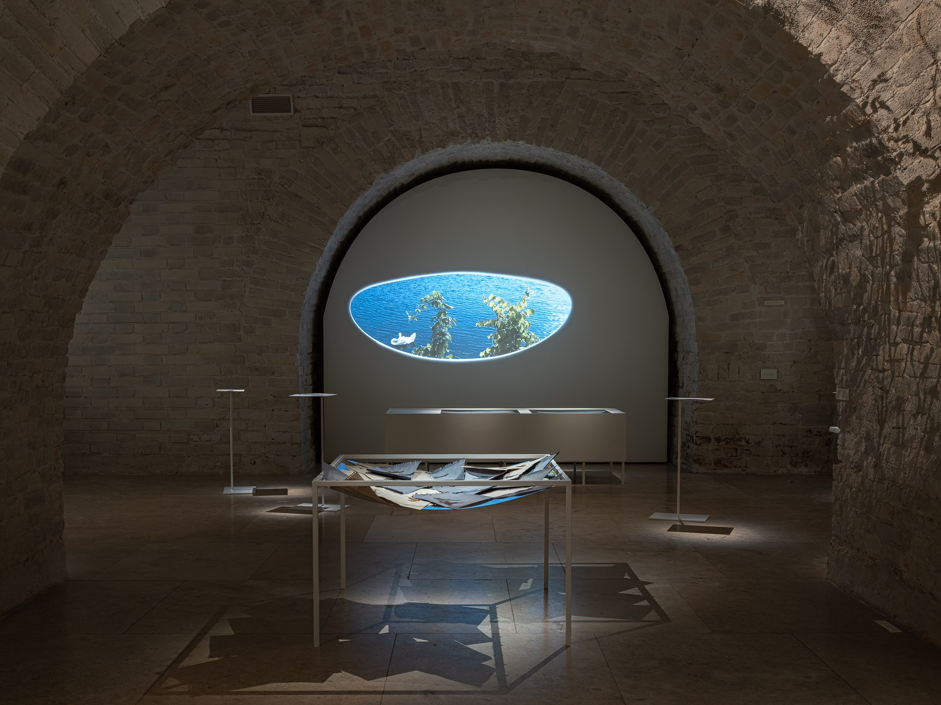 Два других зала выставки, посвященные образу листа как растительного элемента, предполагают особый, «неантропоцентричный», ракурс, где люди уступают место природе. В залах будут представлены разные состояния природы в акварелях из серии «Стирки» (2024) и «Пособие для роботов по изучению людей» (2019), живописных работах «Звук в лесу» (2024) и «Москва-река» (2025), видео-инсталляции «Blue ovals» (2018), а также в графических работах разных лет и фотографиях.